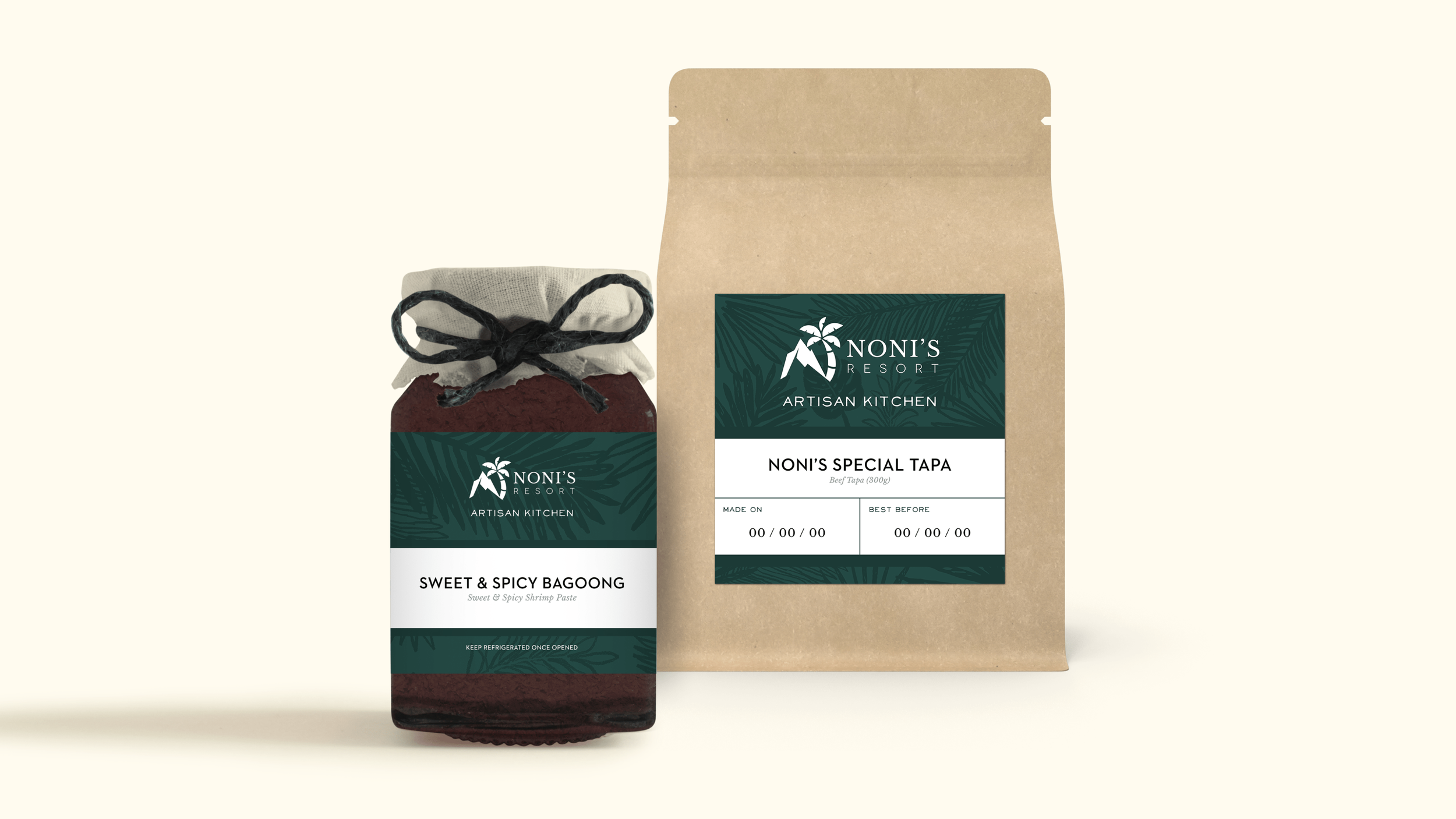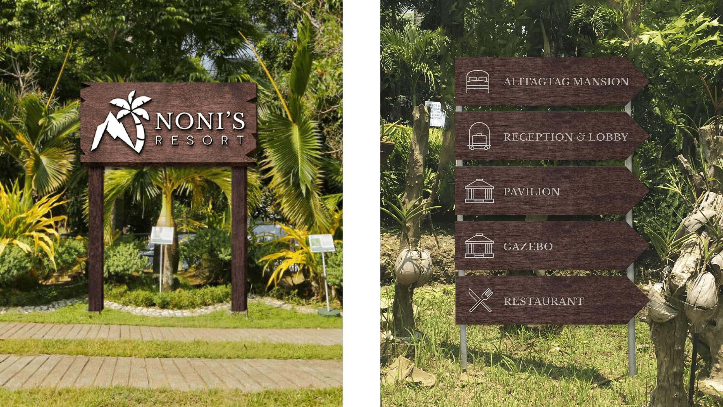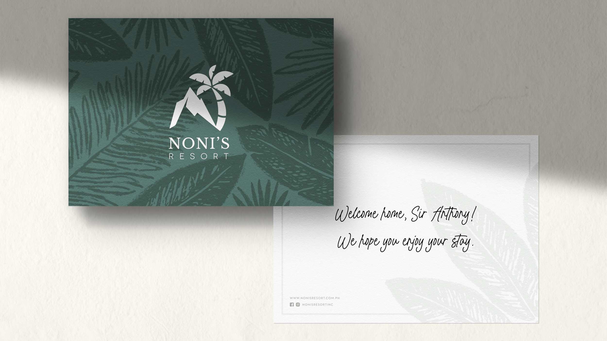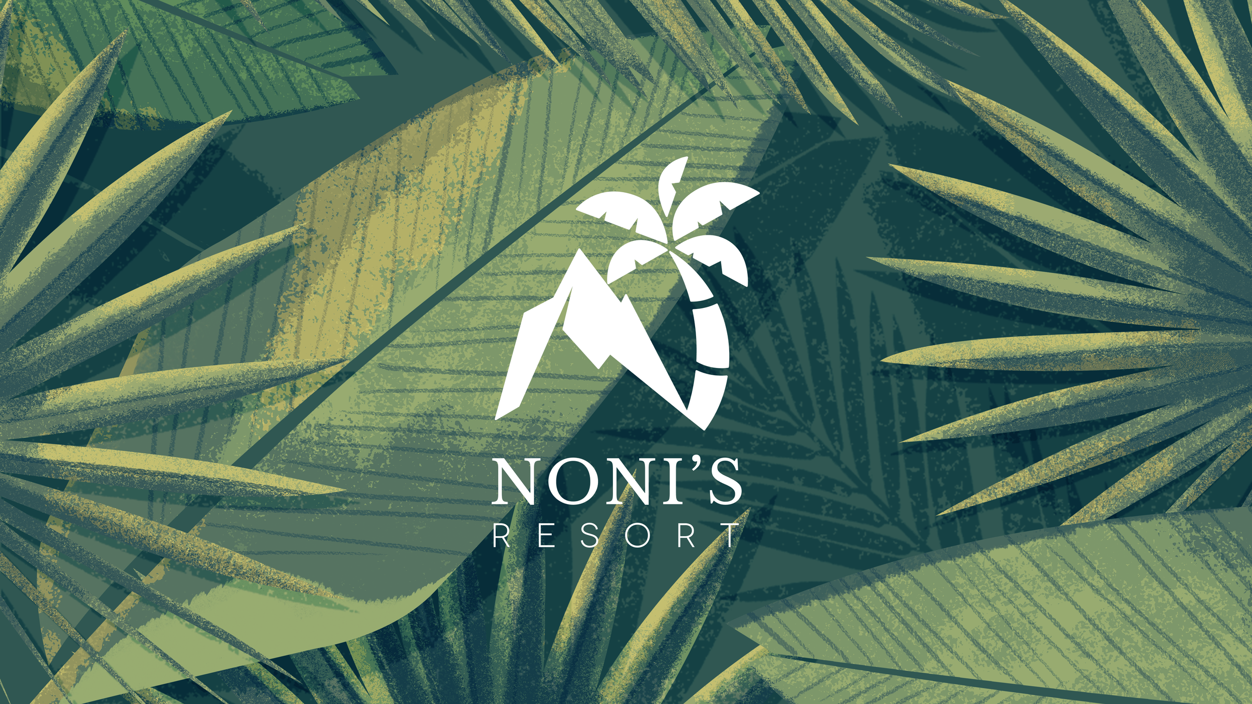 The brandmark captures the very essence of Noni's Resort—an idyllic tropical escape nestled in the mountains, while honouring the visionary behind it all, Noni Pulhin.